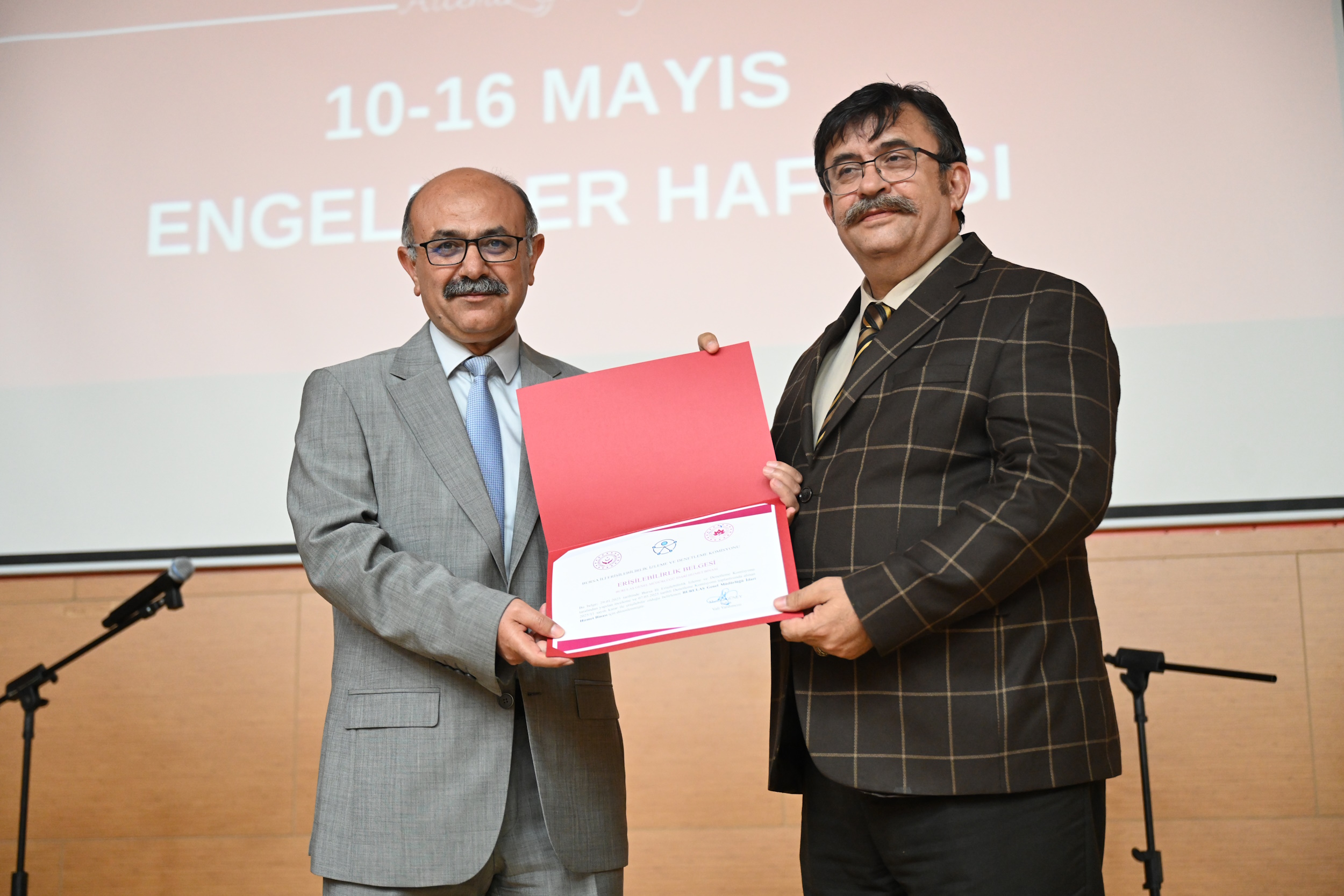 Bursa Aile ve Sosyal Hizmetler İl Müdürlüğü tarafından 10-16 Mayıs Engelliler Haftası nedeniyle 'Ailemiz, Farklılıklarımız En Büyük Zenginliğimiz' isimli program düzenlendi. Programa, Vali Yardımcısı Mustafa Güney, Büyükşehir Belediyesi Başkanvekili Metin Tunçel, Aile ve Sosyal Hizmetler İl Müdürü Faruk Uysal, BURULAŞ Genel Müdürü Fahrettin Beşli, BURFAŞ Genel Müdürü Erhan Pınar ve vatandaşlar katıldı. Engelli hizmetleri ile ilgili örnek çalışmalar yapan kurumlara, Vali Yardımcısı Mustafa Güney tarafından ‘Erişilebilirlik Belgesi’ takdim edildi.